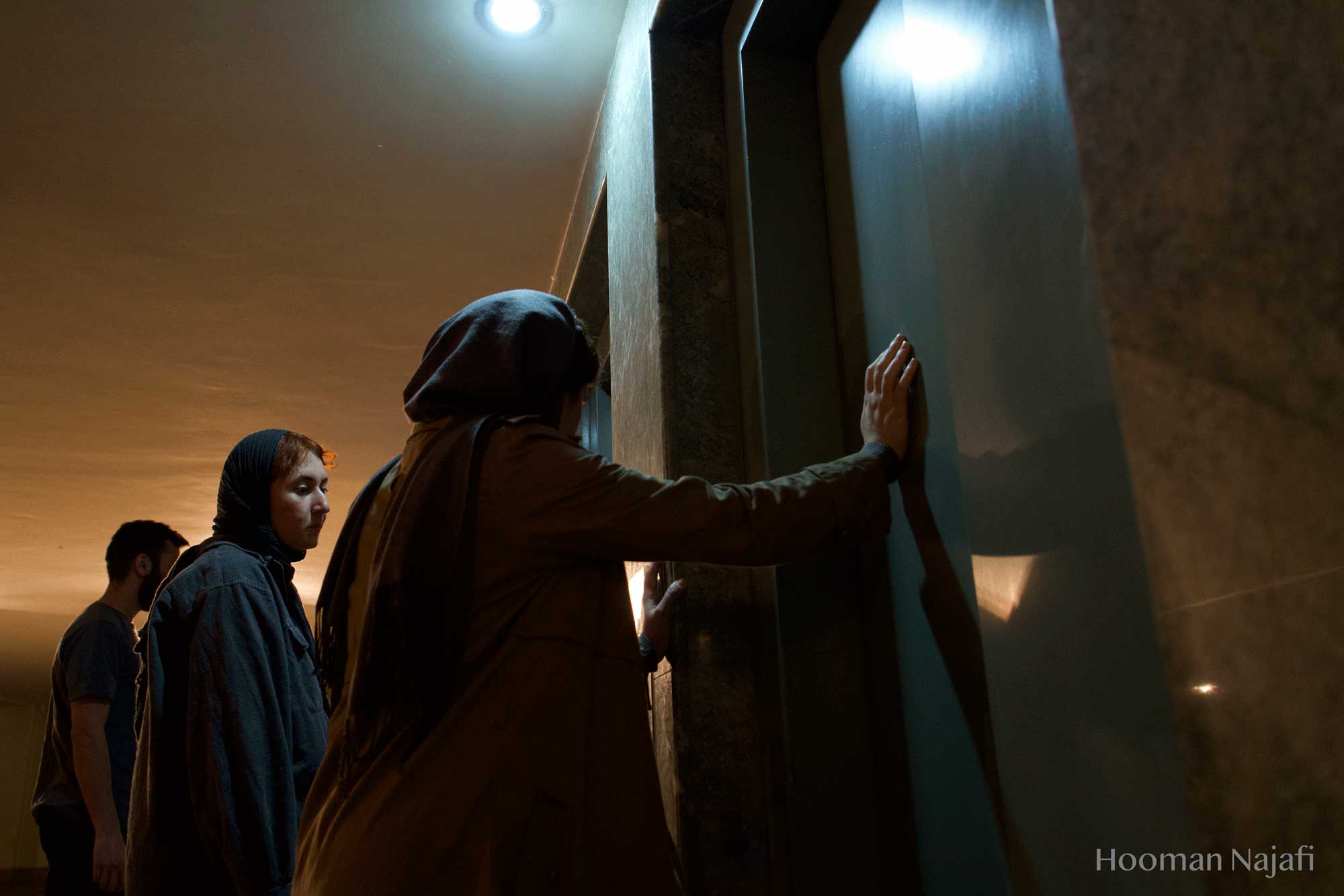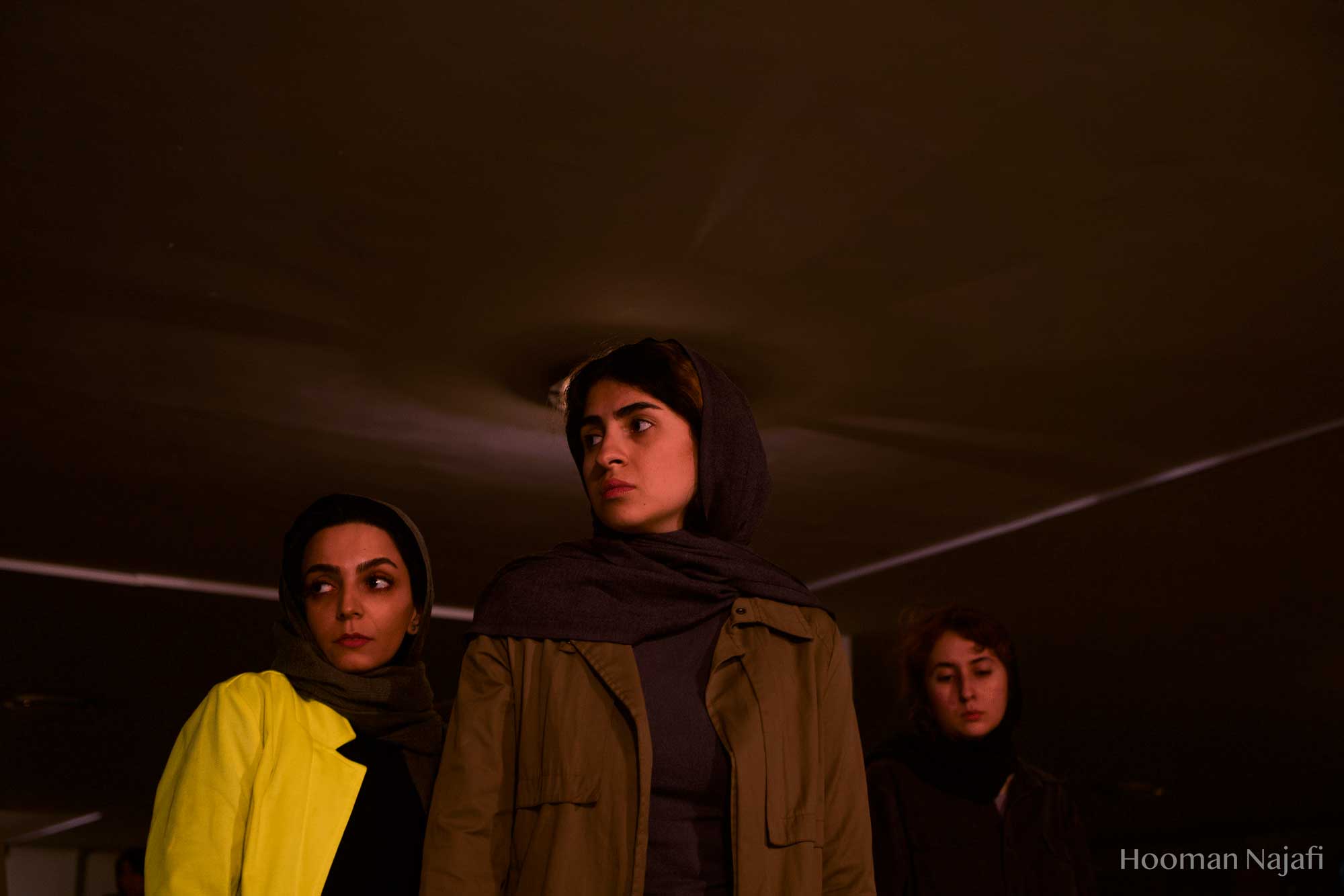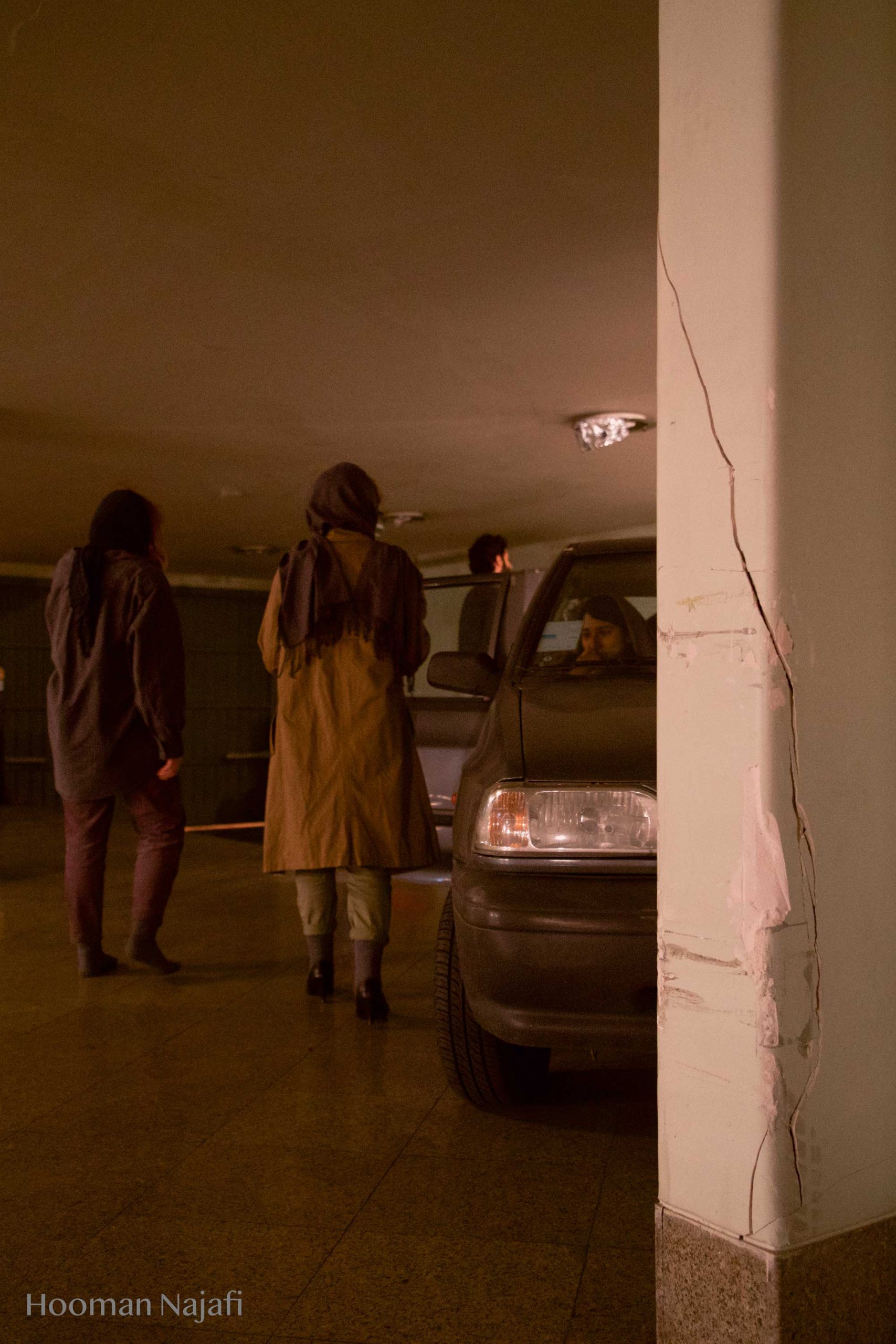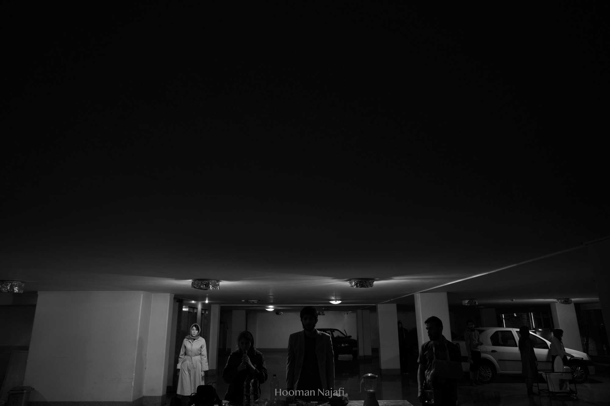Collapsed performance is non-narrative performance Based on the definition of exhaustion from the perspective of Gilles Deleuze: Not becoming! Deterioration of everything possible! Simply put, nothing happens. Conditions without any progress. So, considering the theory of exhaustion of Gilles Deleuze and study of the works of artists such as Francis Bacon, Samuel Beckett, Franz Kafka and Lucien Freud has greatly influenced the formation of this performance. The performance took place in a public parking in Tehran. A parking with glass walls that allow spectators to see the outside surrounding. This choice was formed with the idea that, the possibility of seeing the world outside the performance, when it occurs to the spectator, the contrast of rhythm and space in the minds and bodies of performers, also the performance space, which is based on the exhaustion and deterioration of everything possible. Makes the body more prominent in relation to the outside surrounding and the normal flow of life.